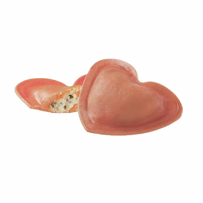 Raffinati e romantici, i cuori con bufala, pomodori e basilico sono un'autentica delizia, con mozzarella di bufala campana (25%) e basilico fresco racchiusi in un impasto preparato con pomodoro, farina di semola di grano duro e uova da allevamento a terra. Per esaltare al meglio il loro sapore, abbinali a una mousse di mozzarella e basilico.