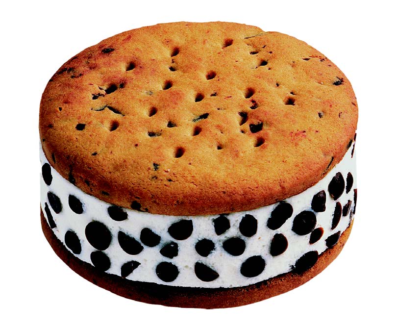 Biscotto cookie con gelato panna e pezzetti di cioccolato.