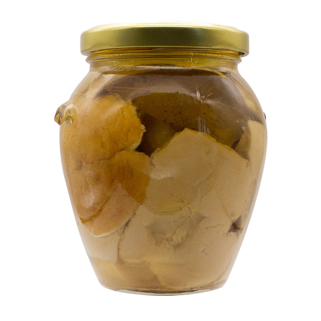 I funghi porcini in olio d'oliva sono grandi e selezionati con attenzione, conservati in pregiato olio d'oliva per mantenere intatta la loro fragranza e consistenza. Questi funghi, lavorati con cura, sono ideali per arricchire antipasti, bruschette, insalate e piatti di carne, offrendo un tocco gourmet a ogni preparazione.