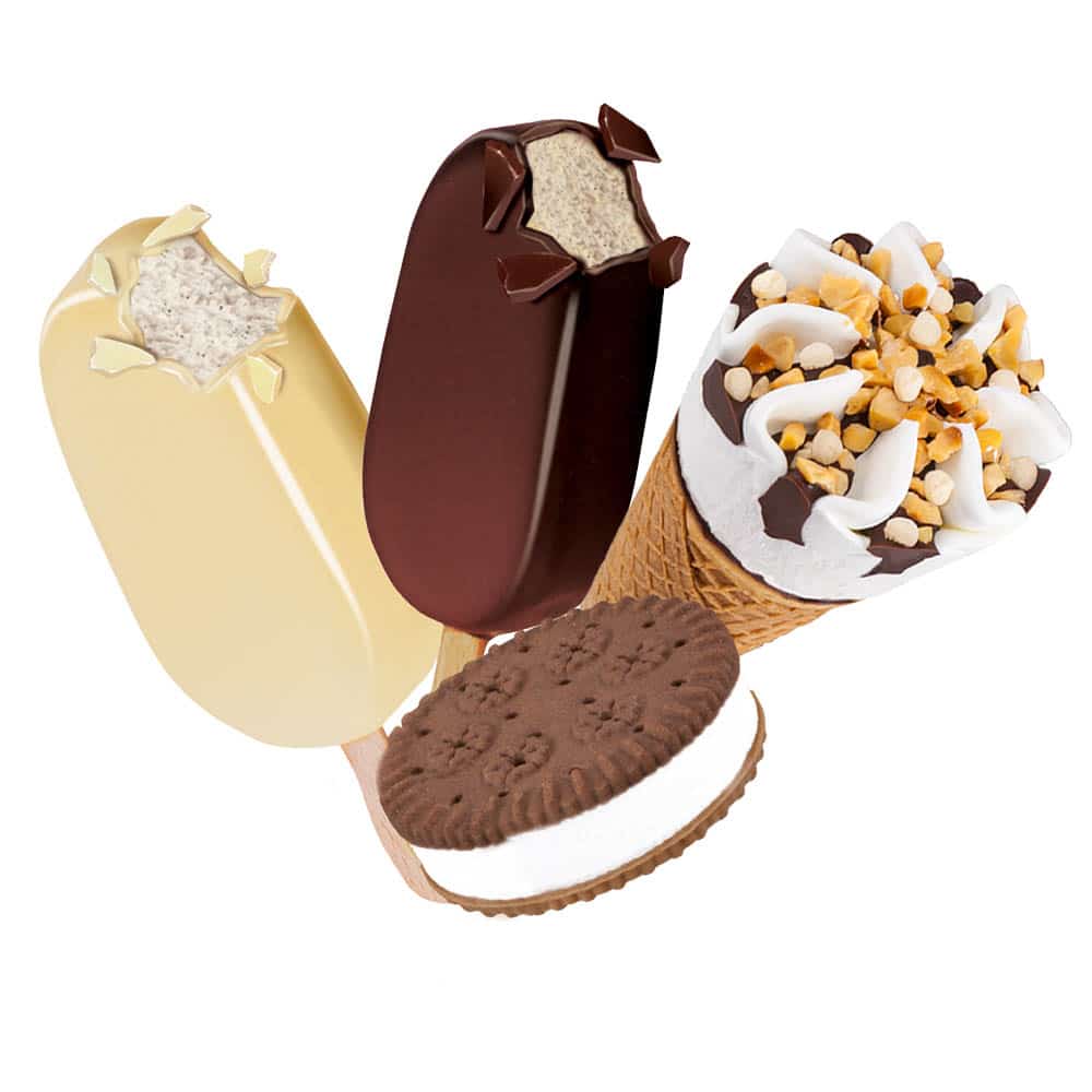 Ingredienti: latte scremato reidratato, copertura al cioccolato al latte 25% (olio di cocco, zucchero, burro di cacao, latte intero in polvere, pasta di cacao, burro anidro, emulsionante: lecitina di girasole, aromi), zucchero, olio di cocco raffinato, sciroppo di glucosio, lattosio e proteine del latte, burro, colorante naturale: annatto, emulsionante: E471, stabilizzanti: E410, E412, E407, aroma naturale di vaniglia.