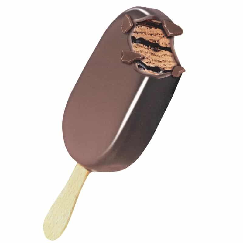 Gelato al cioccolato ricoperto con croccante copertura al cioccolato.