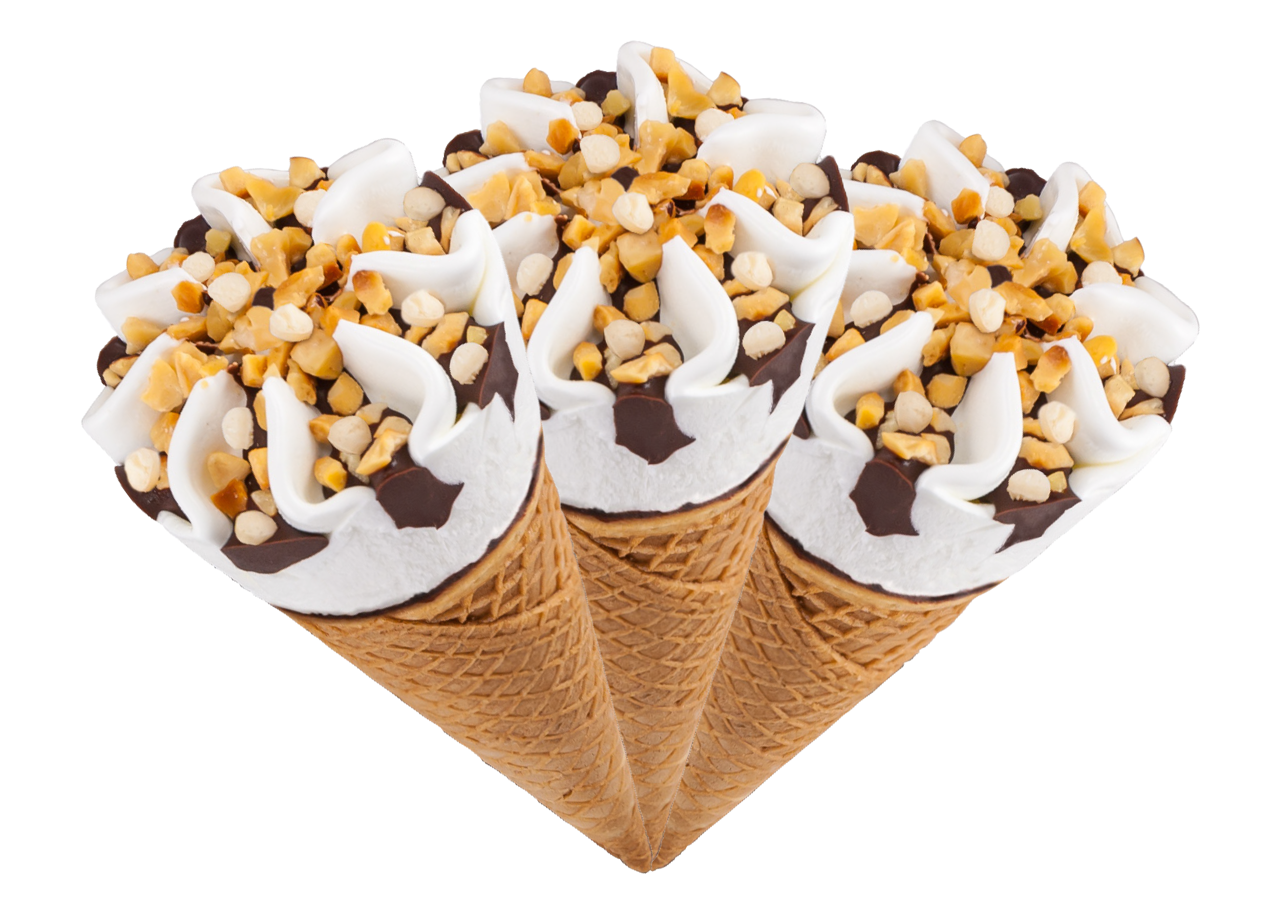Ingredienti: latte scremato reidratato, cono cialda 15% (farina di frumento, zucchero, olio di cocco, lecitina di soia, zucchero caramellizzato, sale), copertura al cacao magro 12% (olio di cocco, zucchero, cacao magro in polvere 16%, emulsionante: lecitina di girasole, aromi), zucchero, olio di cocco raffinato, sciroppo di glucosio, panna fresca 3.5% (pari al 5% nel gelato alla panna), granella di nocciole (3%), lattosio e proteine del latte, meringhe 1% (zucchero, farina di frumento, sciroppo di glucosio, olio di cocco raffinato, amido di frumento, albume d'uovo), burro, emulsionante E471, stabilizzanti: E410, E412, E407, aromi. Può contenere tracce di altra frutta a guscio.