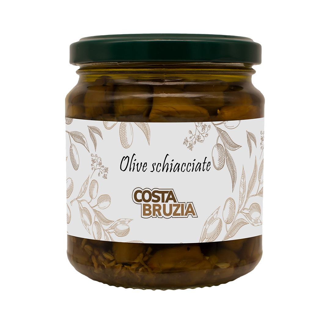 Le Olive Schiacciate sono preparate con cura per offrire un sapore ricco e autentico. Queste olive, selezionate con attenzione e schiacciate per liberare i loro aromi naturali, sono immerse in un pregiato olio di semi, arricchito con erbe e spezie per esaltare il loro gusto succulento. La loro consistenza unica e il sapore intenso le rendono un'ottima scelta per molti usi culinari.